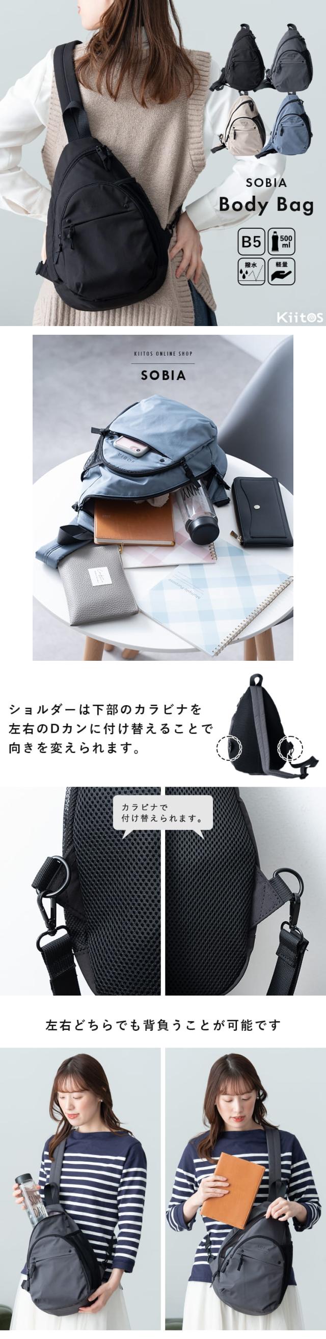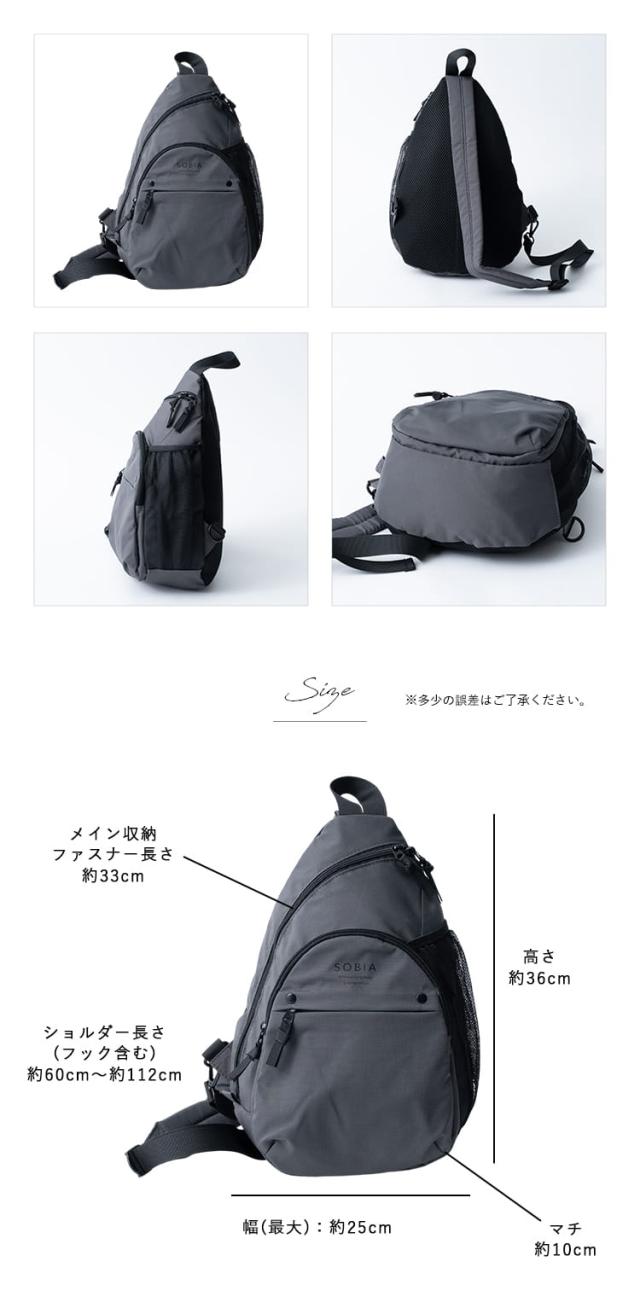 クッション性のあるショルダーで肩に優しく、長時間使っても疲れにくいボディバッグです。