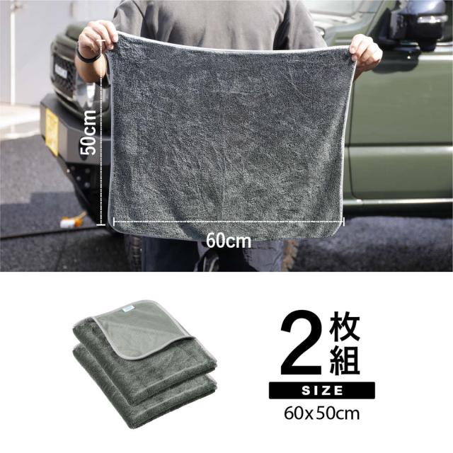 サイズは40×40cmと60×50cmの2種類をご用意しています。40×40cmは手に取りやすく、細かな部分やピンポイントのお手入れに最適です。60×50cmは広い面を一度に拭けるため、ボディやガラスなど面積のある場所でも効率よく作業できます。用途や使うシーンに合わせて選べるサイズ展開で、毎日のお手入れをより快適にします。