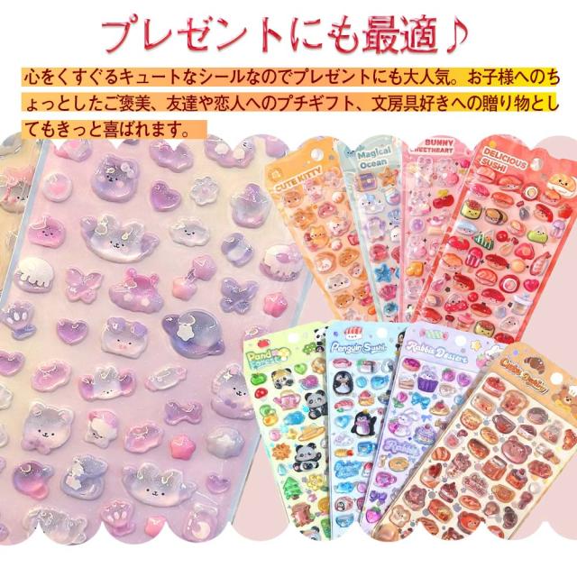 ●【飛び出す!立体的で超かわいいデザイン】従来の平らなシールとは一味違う特別感、クリスタルのように輝きでぷっくり浮き上がるような立体デザインが魅力です。