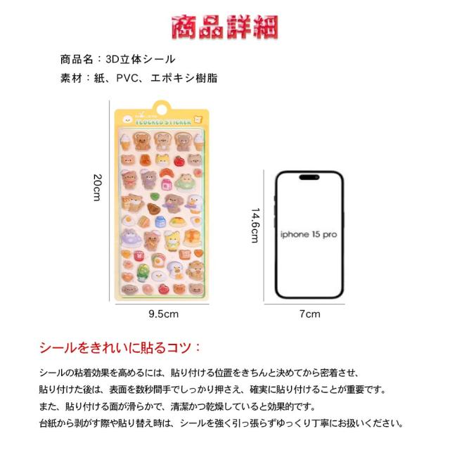 3D 立体 シール ぷくぷく ぷっくり コットンパフ クリア 透明 日記帳用 DIY デコシール 褒めシール 癒しグッズ ステッカー
