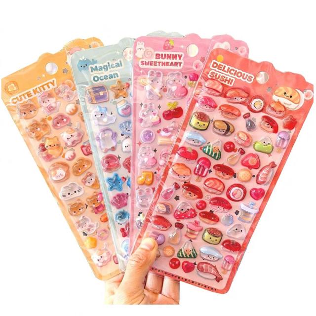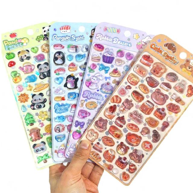 立体ステッカー コットンパフシール コットンパフィーシール ドロップシール 立体シール ぷくぷくシール 推し活 コットンシール 雑貨 浮き彫り クリスタル ツヤツヤ キャラクター 癒し トレンド 文房具 かわいい 女の子 コレクション 交換 プレゼント