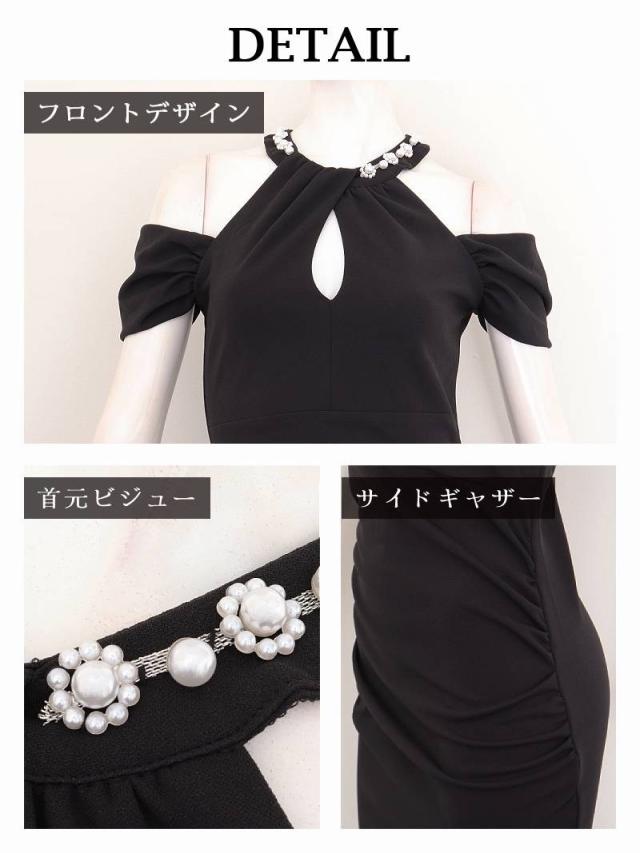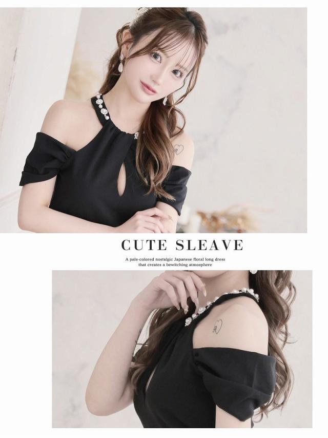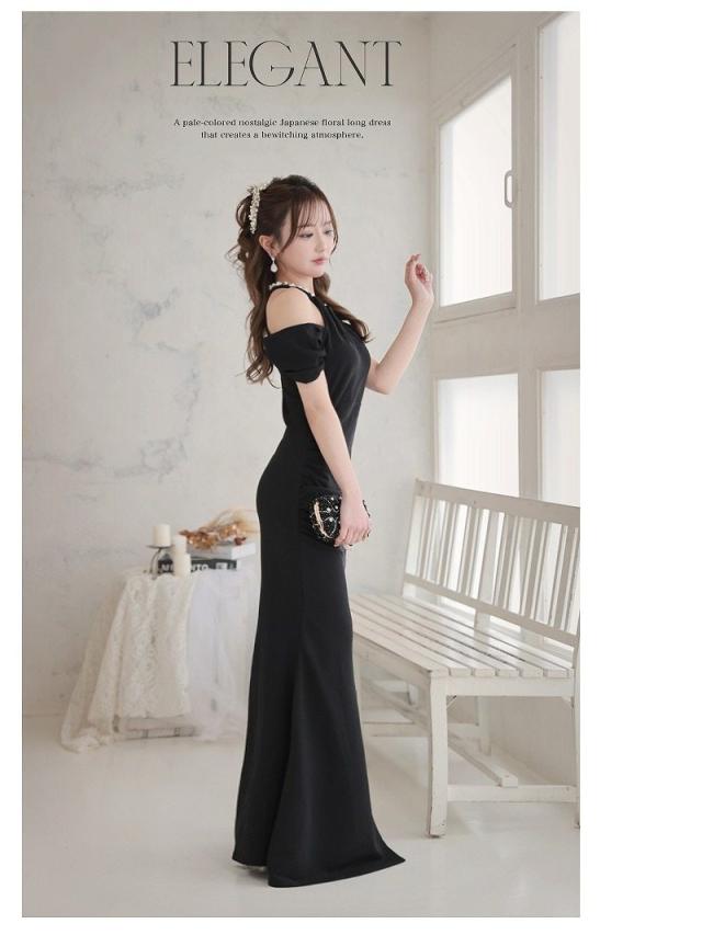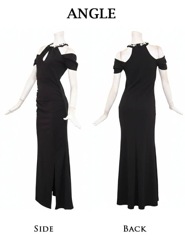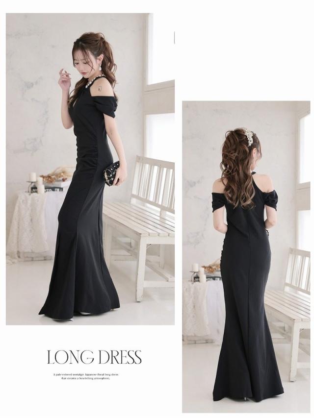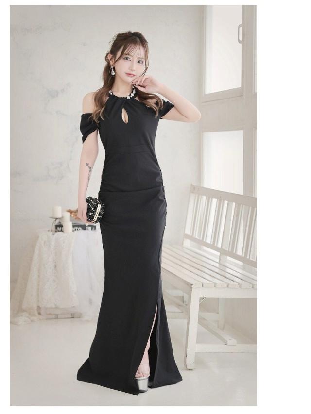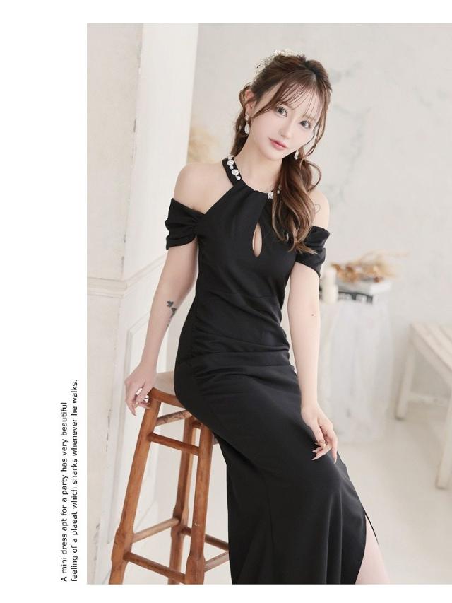 ロングドレス RyuyuChick ホルターネック オフショル 谷間みせ 二の腕カバー ウエストギャザー キャバ ドレス キャ