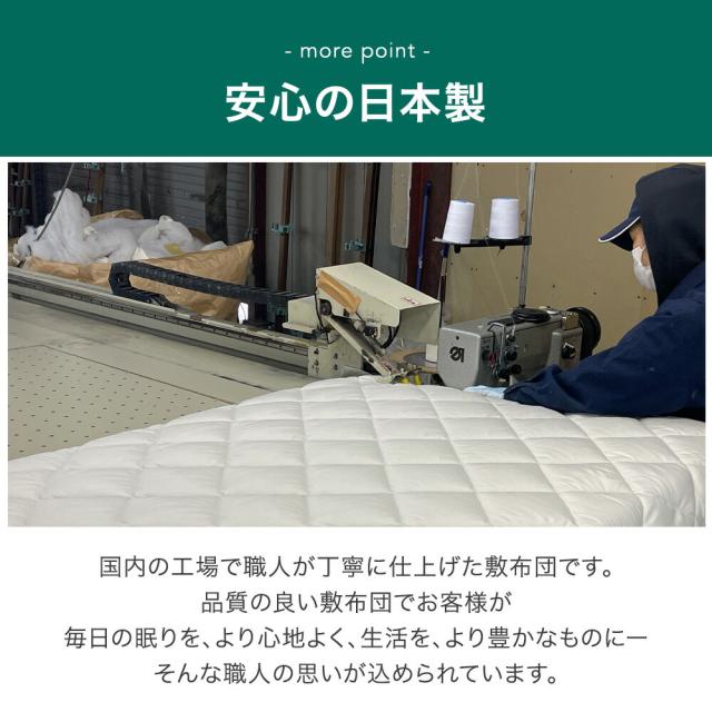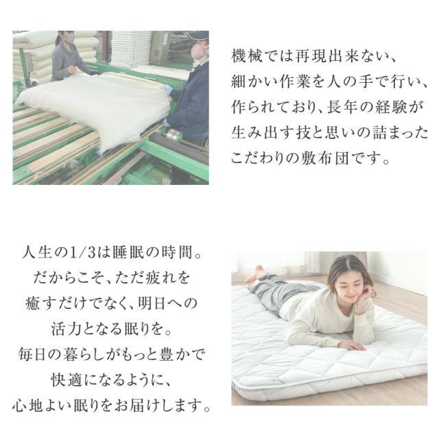 ※敷布団は柔らかい素材で作られてますので、圧縮梱包からすぐに復元した状態、また測り方によっては、多少サイズに誤差が生じる場合がございます。予めご了承下さい。