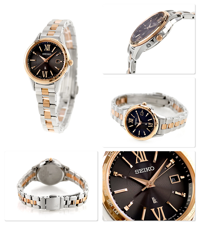 正規品 7年保証キャンペーン 送料無料 セイコー ルキア 日本製 電波ソーラー レディース 腕時計 SSVV090 SEIKO LUKIA Essential Collection アナログ ブラウン シルバー ピンクゴールド ◆ルキアのロングセラーデザインから新色が登場。人気のデザイン要素はそのままに、シックでレディなブラウンのカラーリングに仕上げた品格ウオッチ。ダイヤルはビターチョコレートを連想させるような少し赤みの感じられるダークな色味が特徴です。同系色のルックや全身ニュートラルな色合いでまとめたい方におススメです。ケース4時位置のボタン沈頭化によって、シンプルで無駄のないケースデザインに仕上げているため、どんなファッションにも合わせやすく大人の女性の幅広いシーンに寄り添います。ルキア・ワールドタイム付ソーラー電波の中では最もコンパクトなケース、ブレスレットも細みのシルエットでワーキングシーンでも邪魔にならず女性らしく身に着けていただけます。 発売日:2026年2月発売