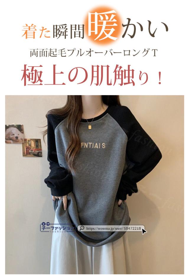 <72H限定・1点あたり1,190円!2点同時購入&クーポン利用で> 長袖Tシャツ 両面微起毛 ふわもち Tシャツ カットソー 冬新作 あったか ロンT 長袖 ラウンドネック 防寒 厚手 肌着 WARM 裏起毛 レディース ゆったり あったか 暖かい 保温 防寒 ティーシャツ 送料無料 秋冬