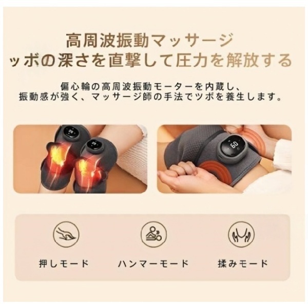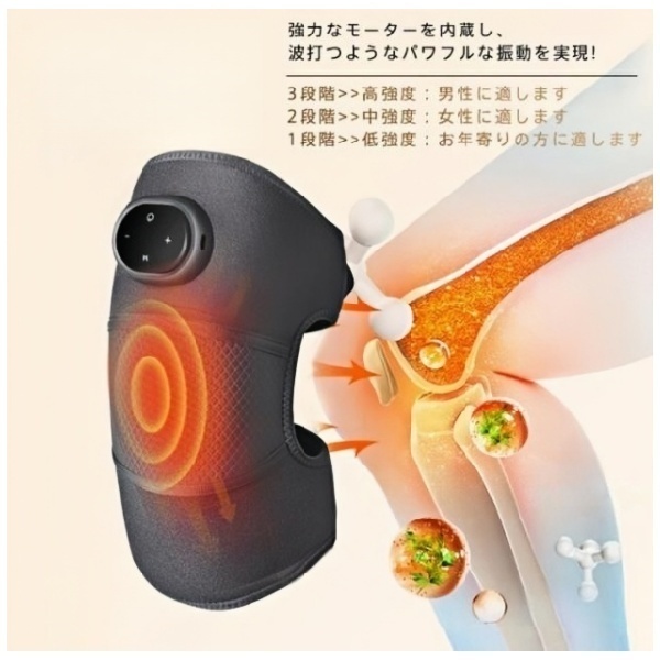 強力モーターによるパワフルな振動が、膝まわりの奥深くまでしっかりアプローチ。