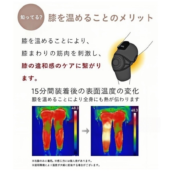 膝全体をカバーし、3種類のモードからお選びいただけます。