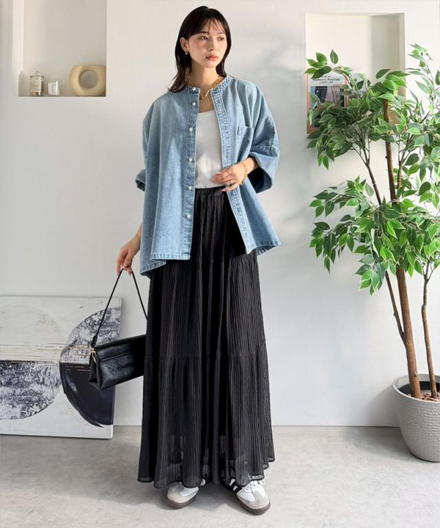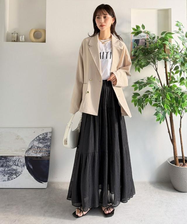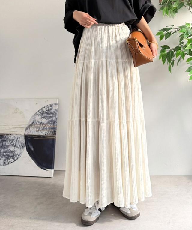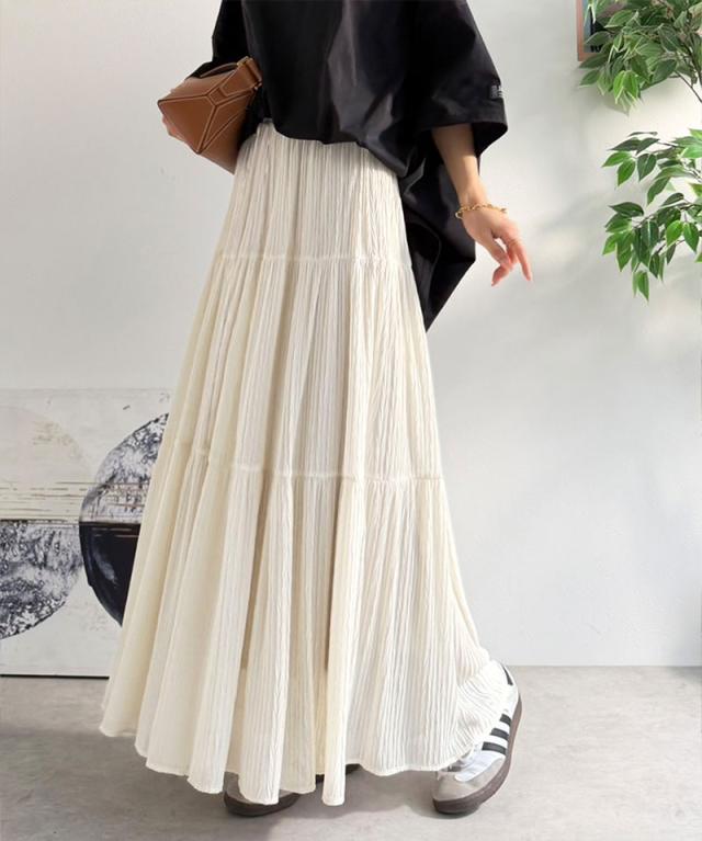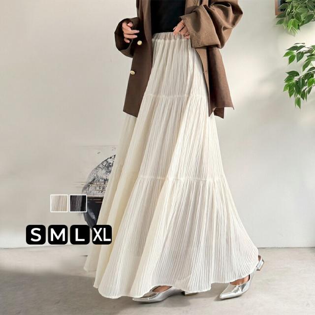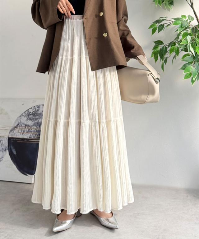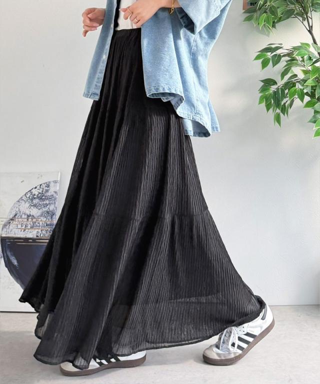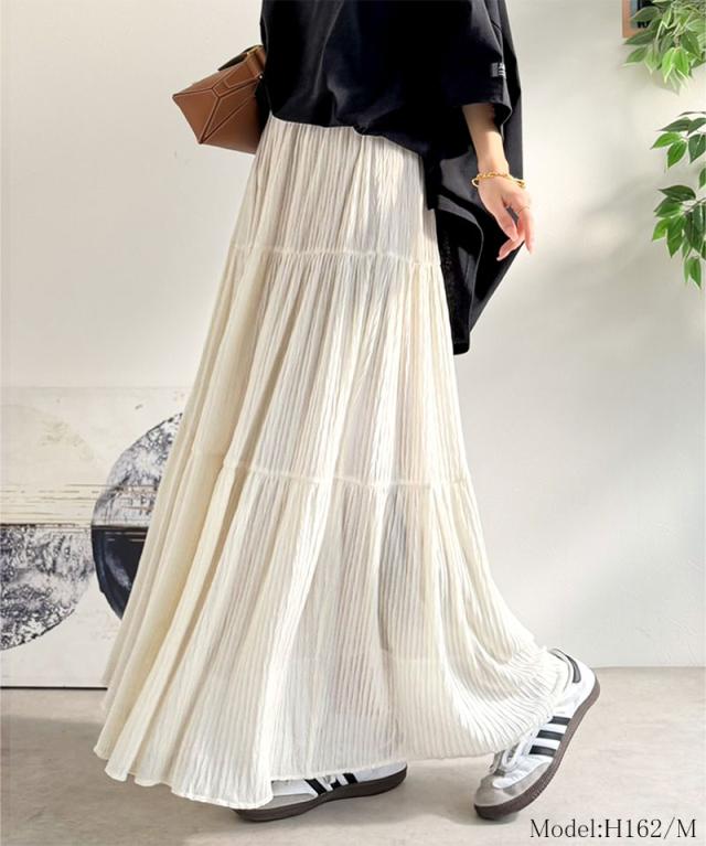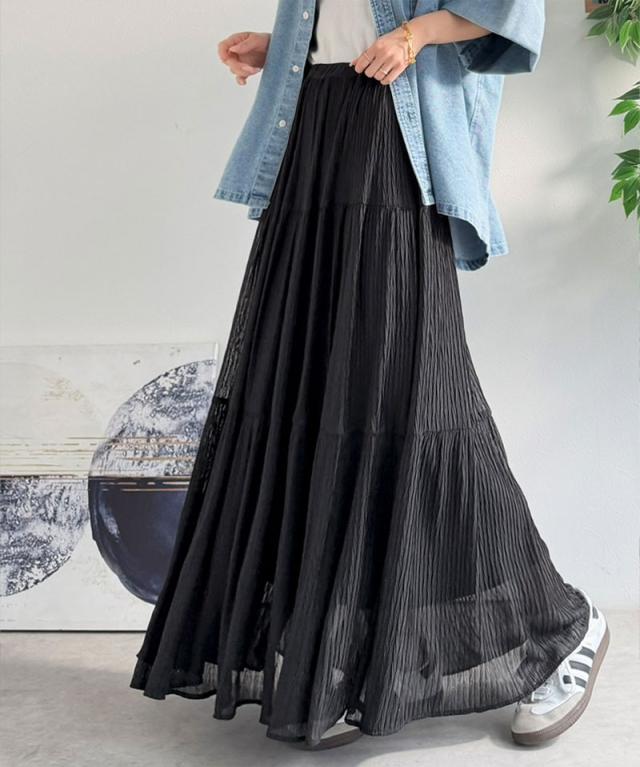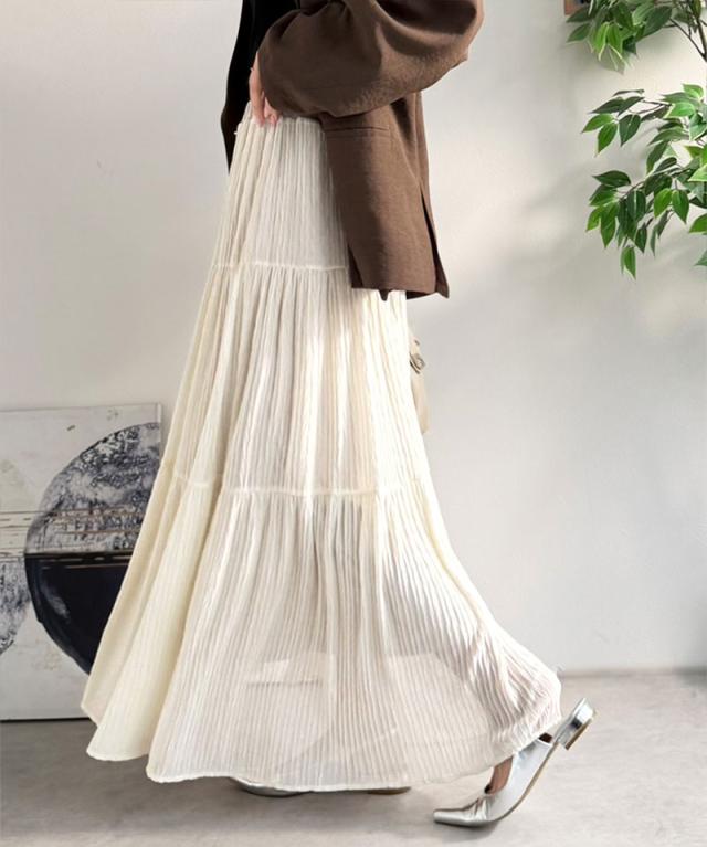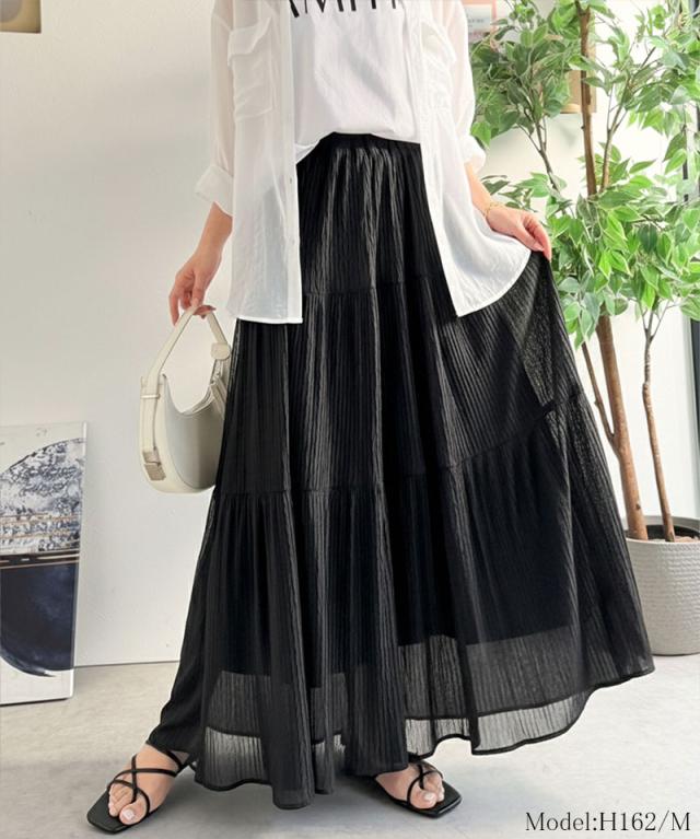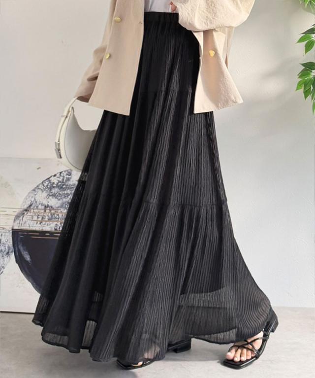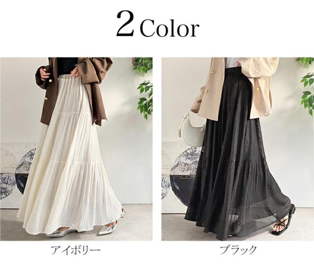クラシカルエルフ春新作 Classical Evon ボトムス スカート レディース シアー 素材 3段 プリーツ ティアード 美シルエット SK ロング丈 大きいサイズ 2026ss ev1020351