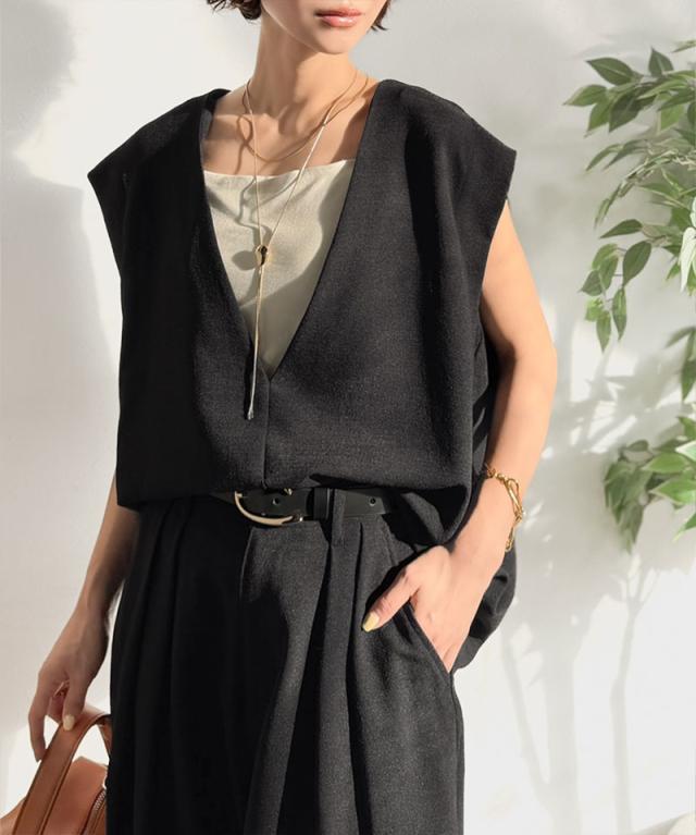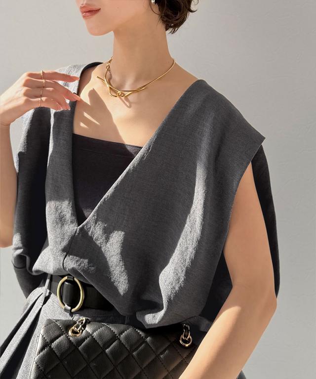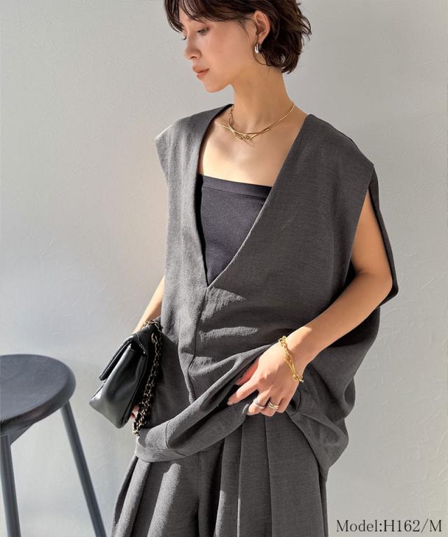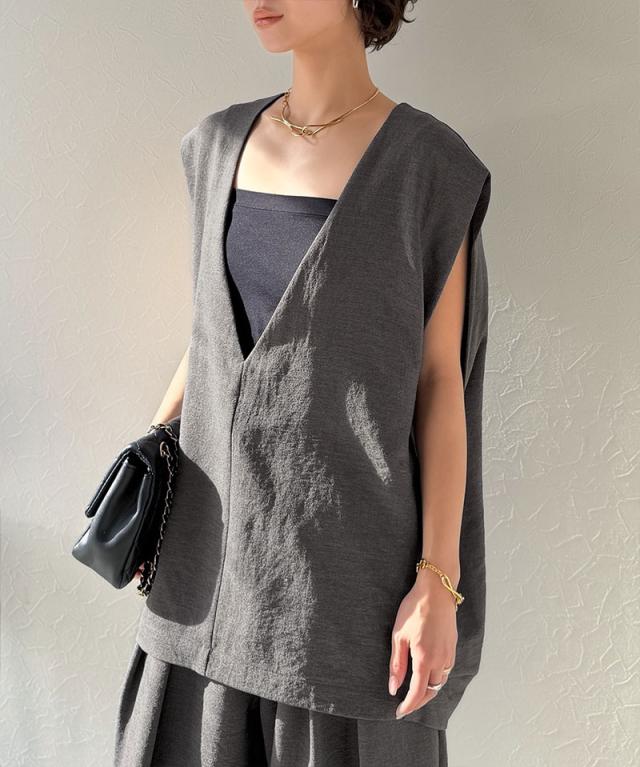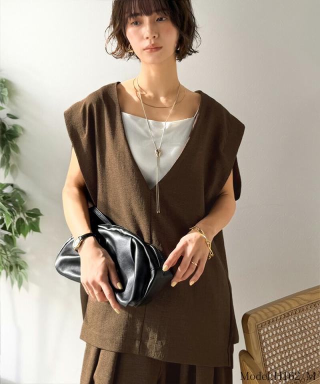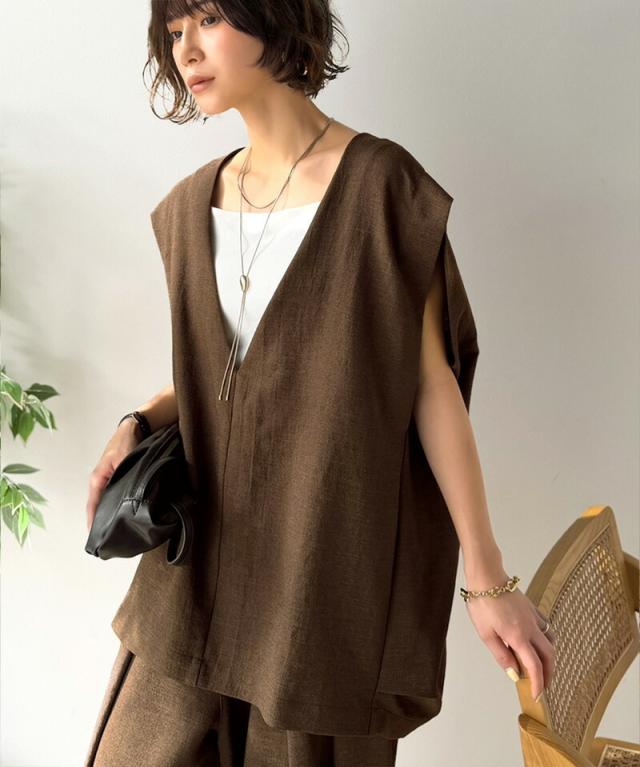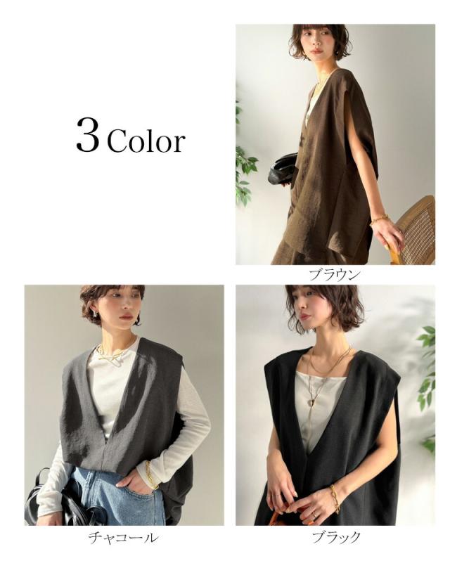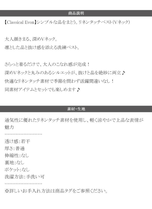 クラシカルエルフ春新作 Classical Evon セットアップ可能 ベスト レディース おしゃれ トップス シンプル リネン タッチ Vネック 羽織り レイヤードコーデ 大きいサイズ 2026ss ev1070206