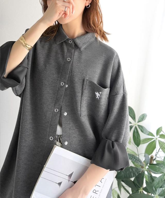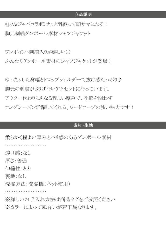 クラシカルエルフ春新作 java ジャバコラボ シャツ レディース カジュアル トップス ゆったり 胸元刺繍 ダンボール素材 シャツジャケット 羽織り 大きいサイズ 2026ss jv1010558