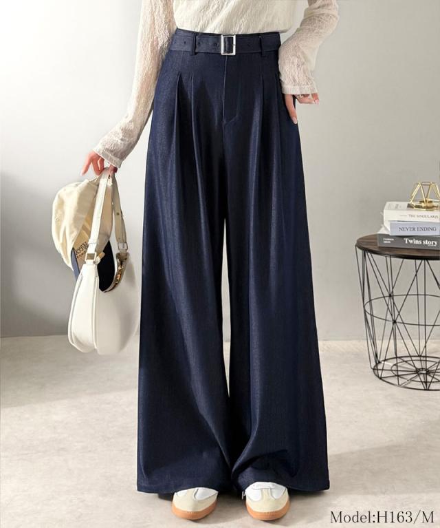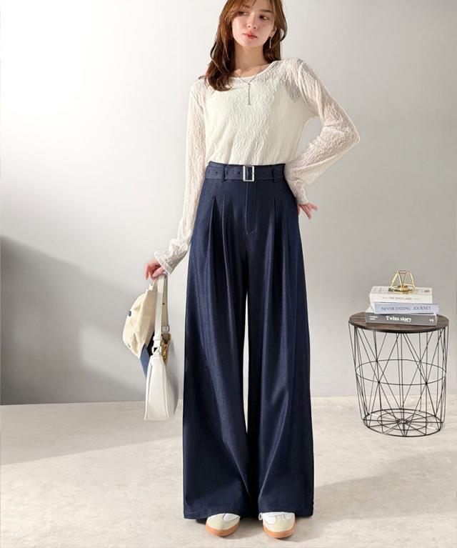 クラシカルエルフ春新作 mily bilet 速乾機能 接触冷感 機能付き ボトムス パンツ レディース 美脚見え ベルト付き ハイウエスト デニム スラックス セットアップ可能 大きいサイズ 2026ss mi1329067