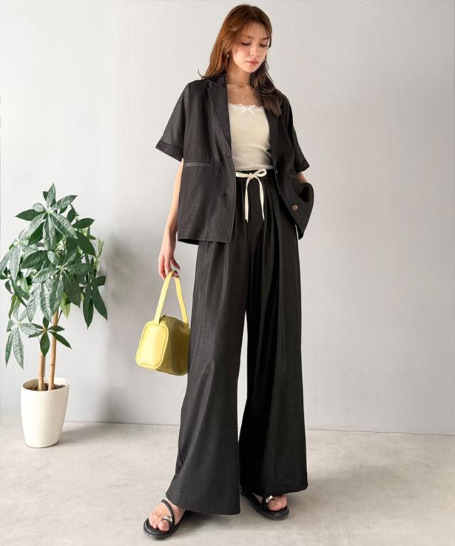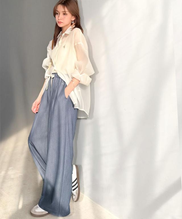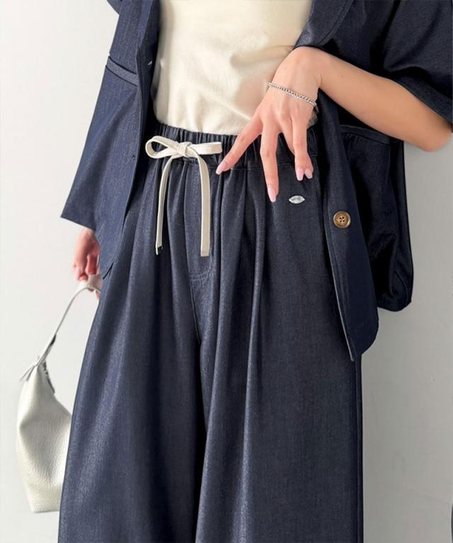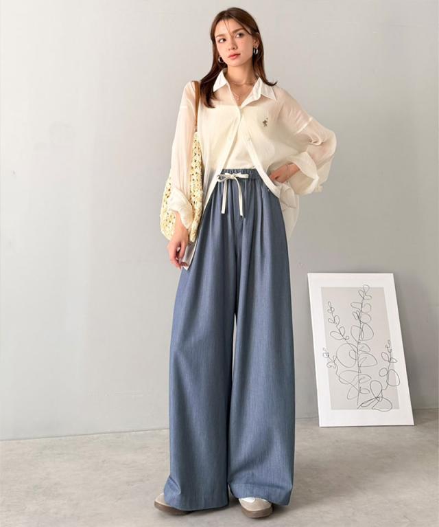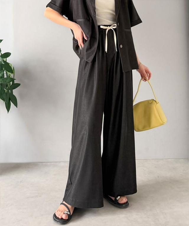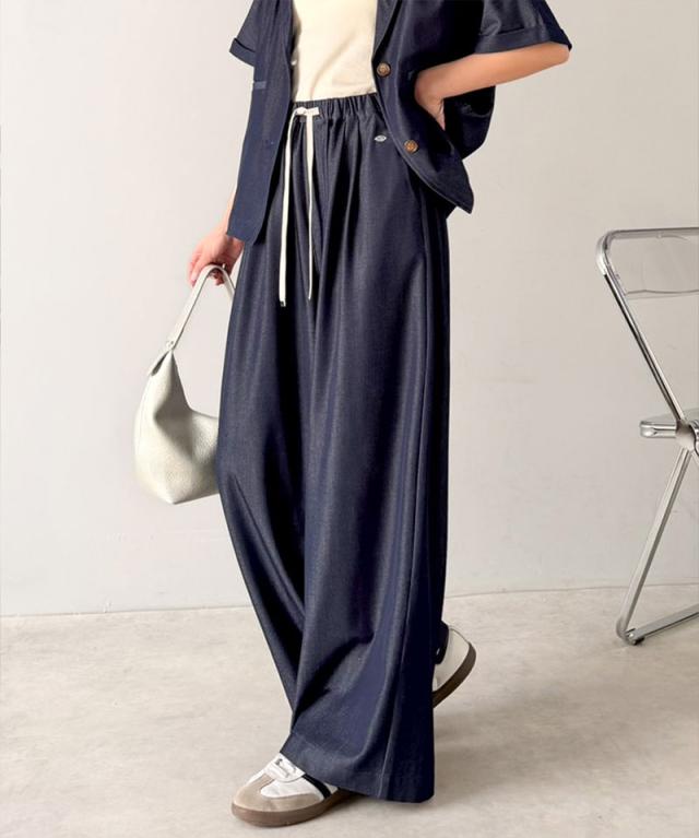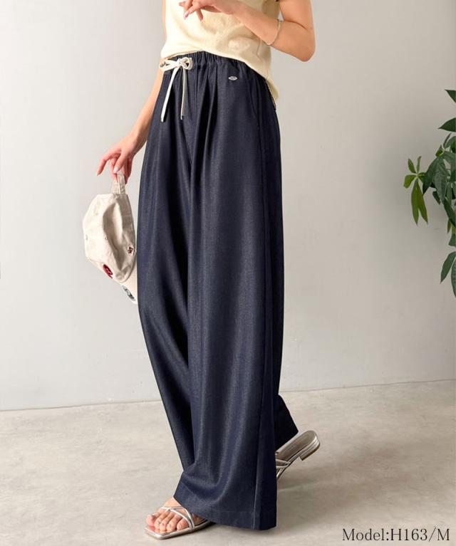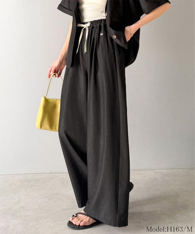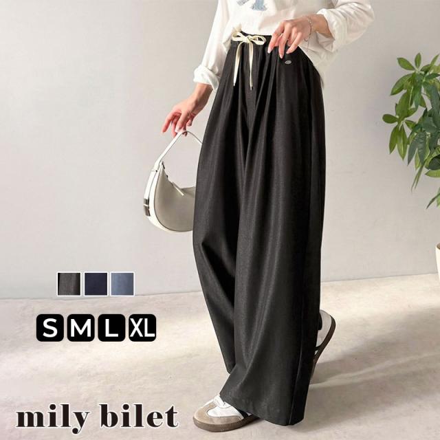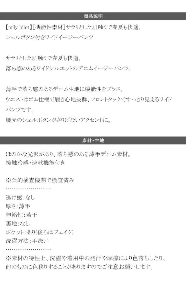 クラシカルエルフ春新作 mily bilet 速乾機能 接触冷感 機能付き ボトムス パンツ レディース シェルボタン 付き ウエスト ゴム セットアップ可能 ワイドイージーパンツ 大きいサイズ 2026ss mi1329082