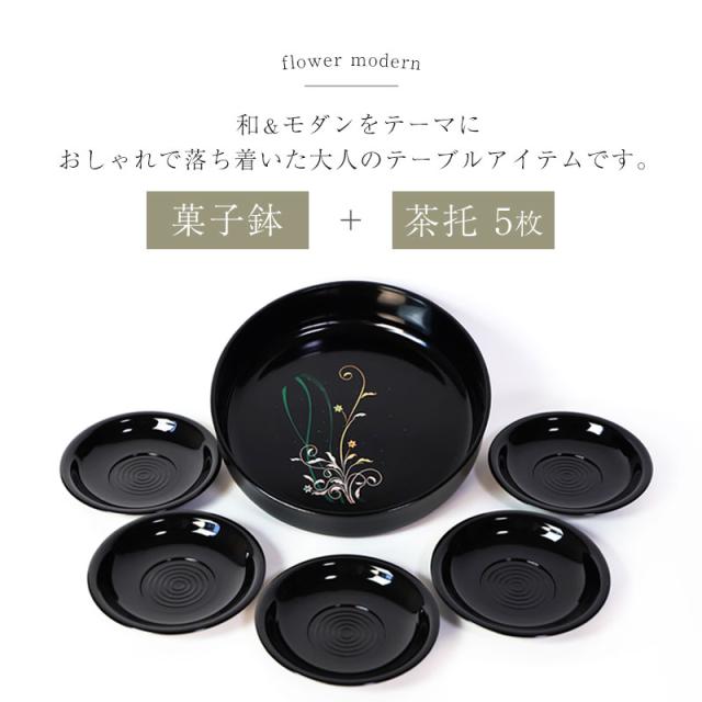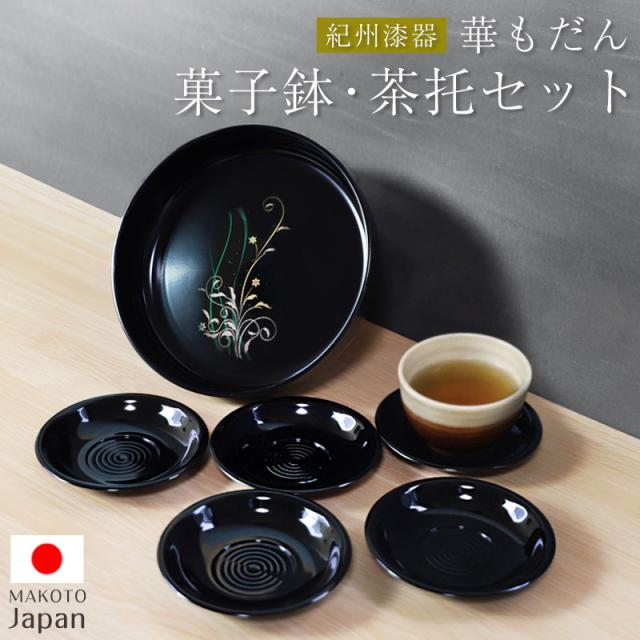 菓子盆 菓子鉢 茶托 コースター 6点 セット 紀州塗り 日本製 MAKOTO japan 華もだん 菓子鉢・茶托揃え おしゃれ かわいい 和風 仕様 お盆 トレー トレイ 来客用 おもてなし 紀州漆器