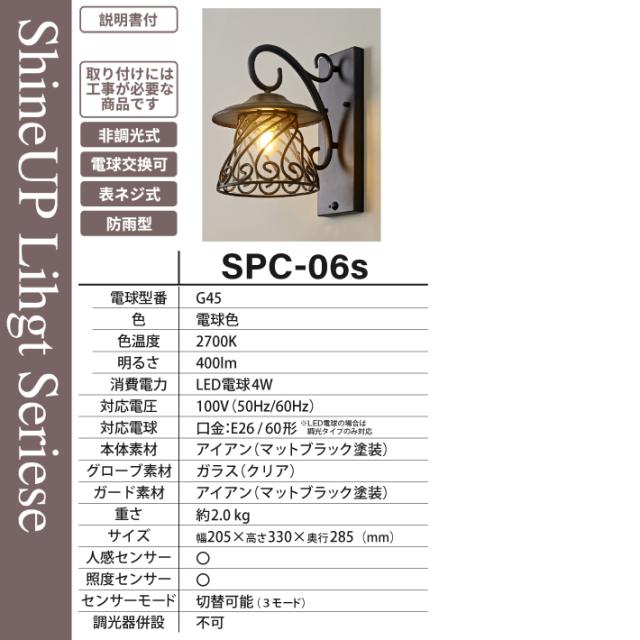 【人感センサー】玄関灯 ポーチライト 防雨 外灯 玄関 LED 照明 門柱灯 庭用 ブラケットライト 明るさセンサー同時搭載 おしゃれ PSEマーク取得 SPC-06S