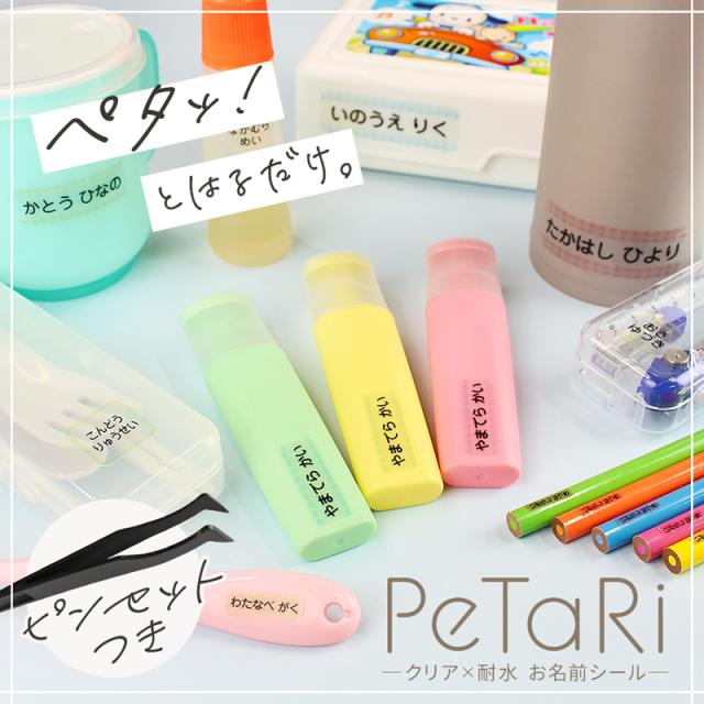 | 商品説明 | 面倒な名前つけがかわいくカンタンに!ペタペタ貼るだけ!クリアタイプのお名前シール!! 保育園や小学校、大人の方も使える豊富なデザインからお選び頂けます。 貼る素材の色が透けて見える透明タイプ。ラミネートはツヤツヤ光沢タイプ! ツヤのある見た目で高級感のある発色のよい仕上がりが特徴です。 細かい貼り付け作業にも最適なピンセット付き!!カット済みだからすぐ貼れて、 ラミネート加工もされているので汚れや破れからシールを保護。 また、貼りやすく剥がれにくくキレイに剥がせる素材を使用しています。 各シールのサイズは全9種類、シートバリエーションは全てのシールサイズが入った全サイズセットや 使用頻度の高いサイズのみのセット、入園・入学向きの組み合わせのセットなど全9種類から お選びいただけます。 これから文字を覚えるお子様にも問題がないようにフォントは教科書で使われる「学参フォント」でお名前を印刷! 3種類のフォントからお選び頂けます。 デザインは全15種類!無地・縁取りカラーあり・上下チェック柄からお選びいただけます |