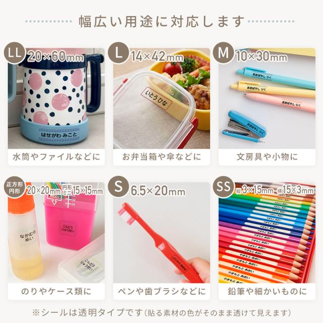 | 名前シール おなまえシール 透明 クリア 大 小 大人 子供 入園 入学 準備 小学生 防水 文字のみ |