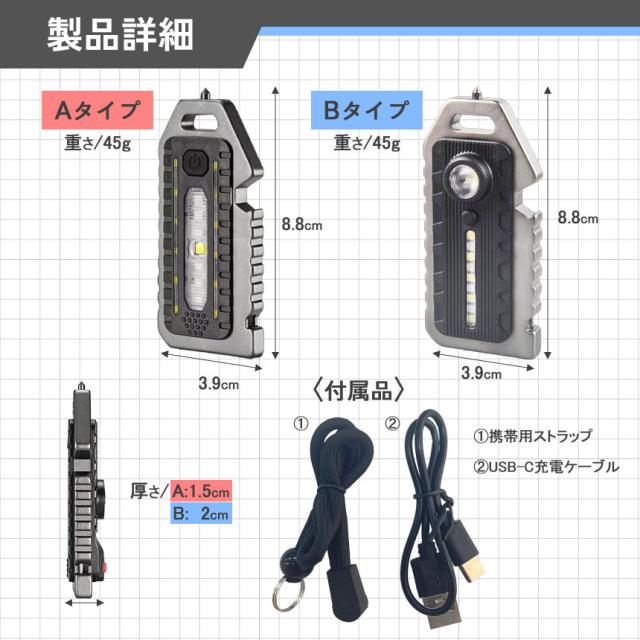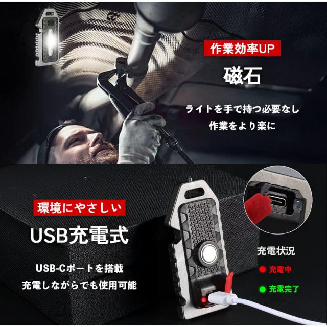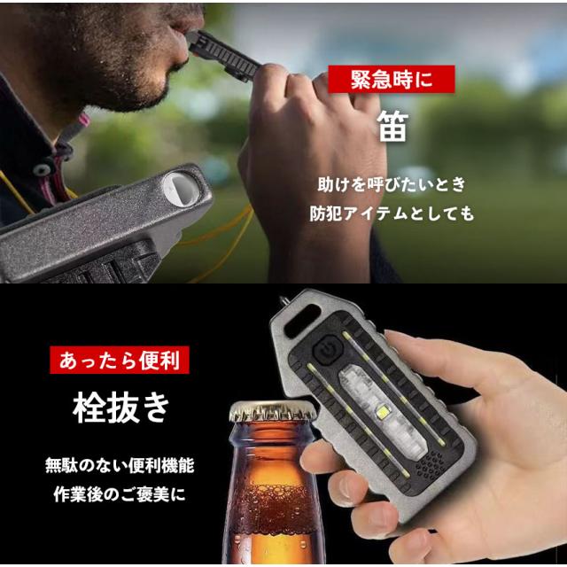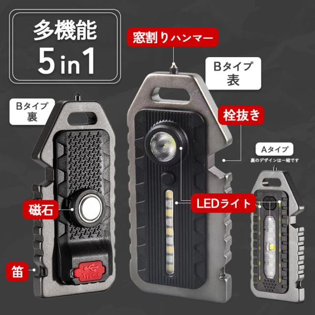 3個セット LEDライト 5in1 小型 ライト 多機能 COB 充電式 Type-C 防災 携帯 キーホルダー 自転車 マグネット 作業灯 作業 非常用 アウトドア 軽量 薄型 LED 懐中電灯 緊急脱出 ガラス割り ハンマー 車載 キャンプ グッズ 非常灯 コンパクト 笛 栓抜き 磁石 マルチツール