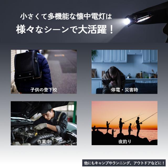 コンパクトなボディにCOBライトを搭載。日常使いから非常時まで、幅広いシーンで活躍する多機能ライトです。