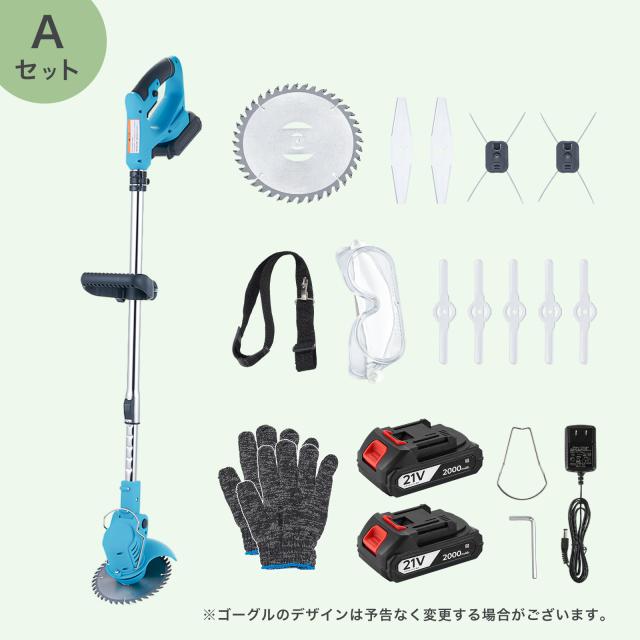 アタッチメント 替刃4種 チップソー ナイロン コードカッター ワイヤー 刃 ブレード ガード ハンドル 肩掛けベルト カバー 充電器付 バッテリー 21v 2個 ゴーグル 軍手