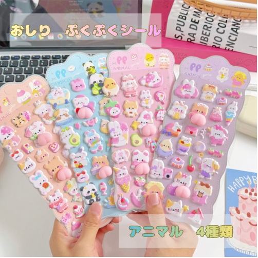 4種類 3Dシール おしりシール パステルカラー シール アニマル 立体 ぷにぷに ぷくぷく うさぎ パンダ くま 手帳 シール帳 シール交換 かわいい ぷっくり ご褒美 DIY スマホ デコ 文房具 小学生 女の子 プレゼント