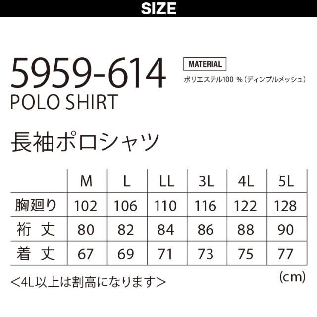 寅壱 赤耳 長袖ポロシャツ ポロシャツ 5959-614 長袖 長袖シャツ インナー