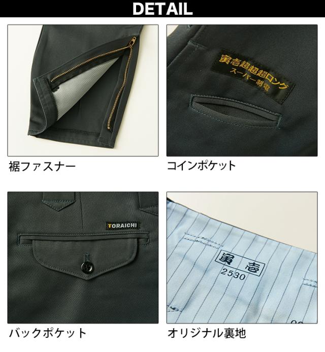 寅壱 超超超ロング八分 2530-419 静電気防止 裾ファスナー 制電 防塵 高耐久性 綿混紡 オールシーズン 鳶 トビ 職人 大工 土木 工事 現場 屋外 イージーケア ワーク メンズ 定番 通年 作業服 作業着 TORA