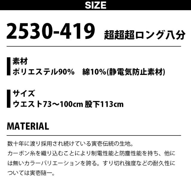 寅壱 超超超ロング八分 2530-419 ニッカ 作業着 作業服 作業ズボン ワークパンツ