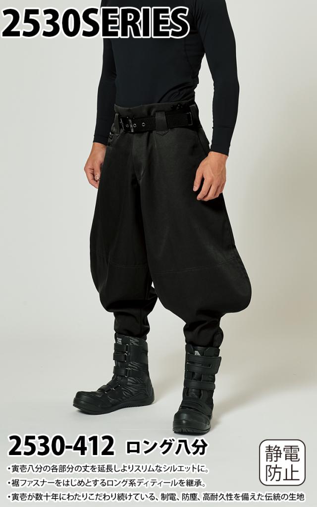 寅壱 ロング八分 2530-412 静電気防止 裾ファスナー 制電 防塵 高耐久性 綿混紡 オールシーズン 鳶 トビ 職人 大工 土木 工事 現場 屋外 イージーケア ワーク メンズ 定番 通年 作業服 作業着 TORA