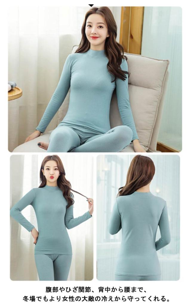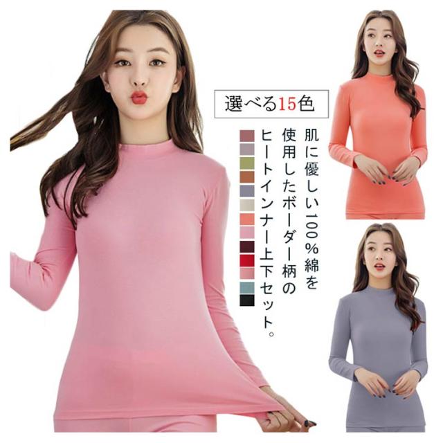 ヒートテック 2点セット ヒートテック 秋冬 ハイネック 長袖 長袖インナー 上下 モックネック tシャツ レギンス スパッツ セットアップ 100%綿 あったかインナー 肌着 レディース インナーシャツ インナー 暖かい 発熱 保温 防寒 薄手 ストレッチ 大きいサイズ