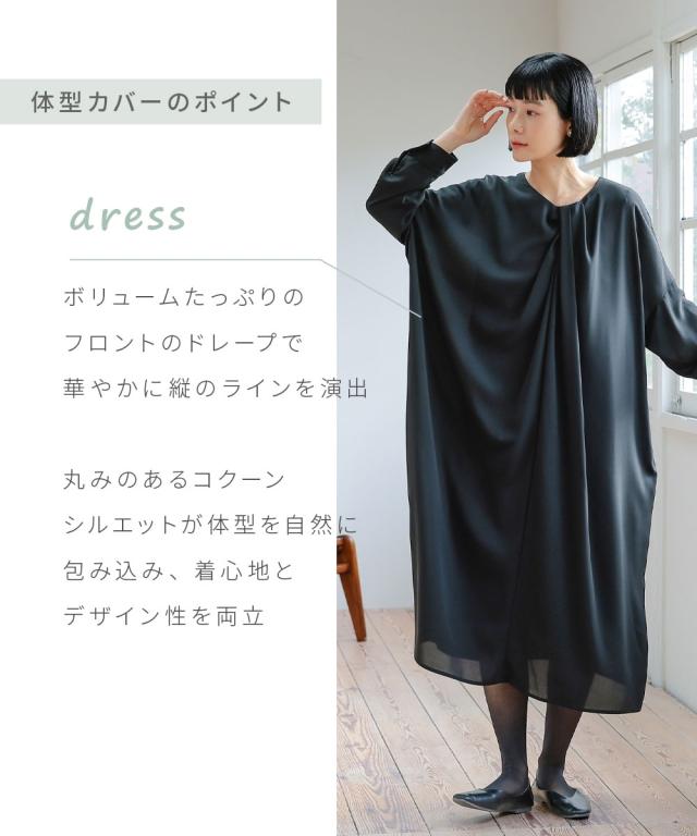 喪服 礼服 ブラックフォーマル レディース 日本製生地使用 洗える防しわドレープコクーン デザイン ワンピース 〔Neina〕 春 夏 秋 冬 | M/L | ニッセン nissen