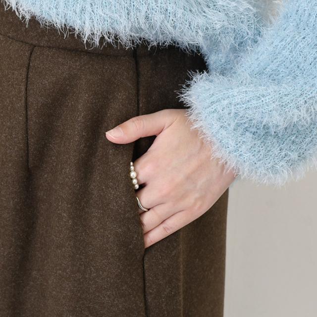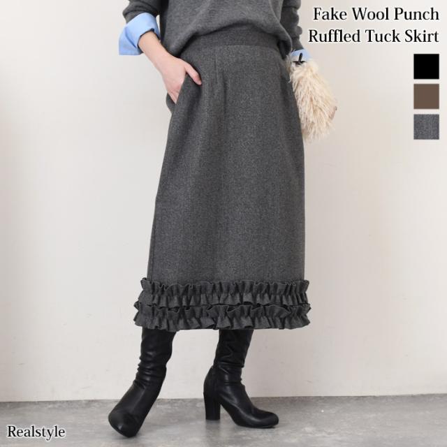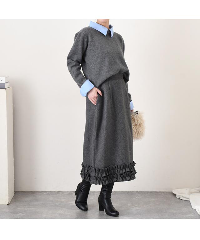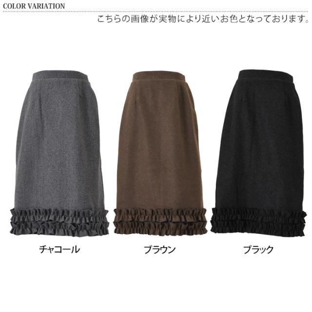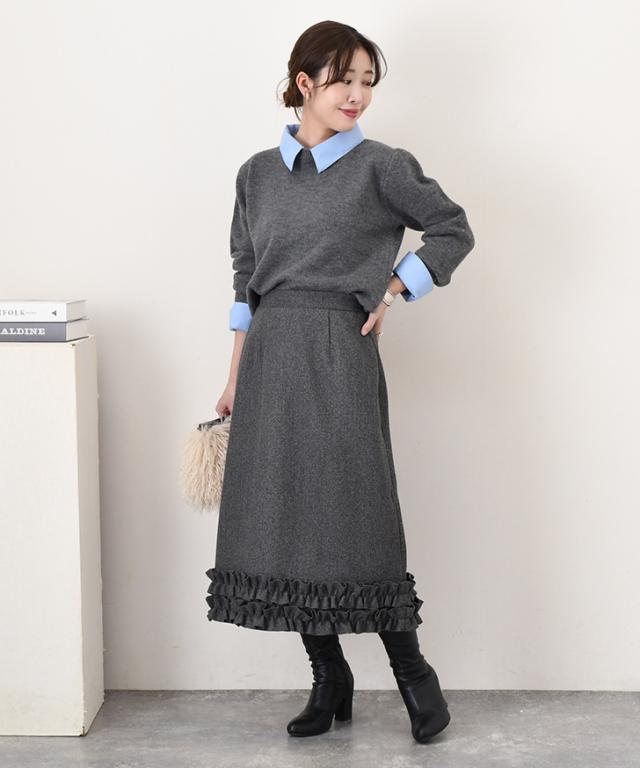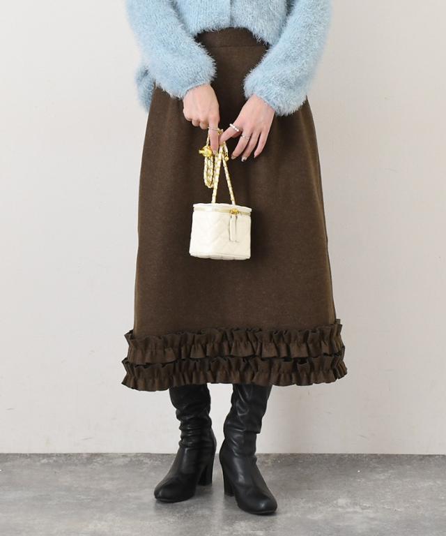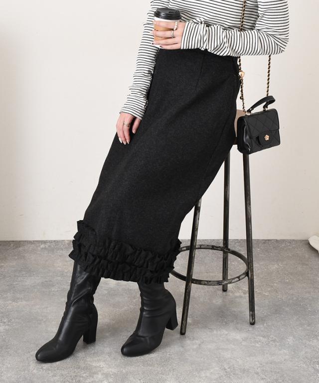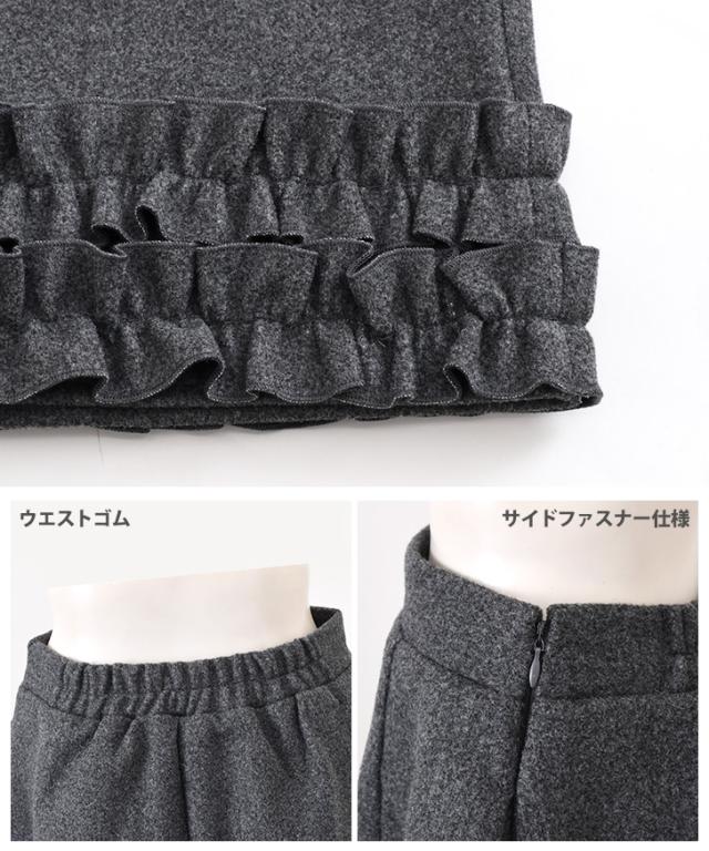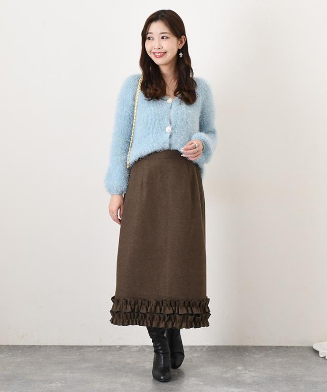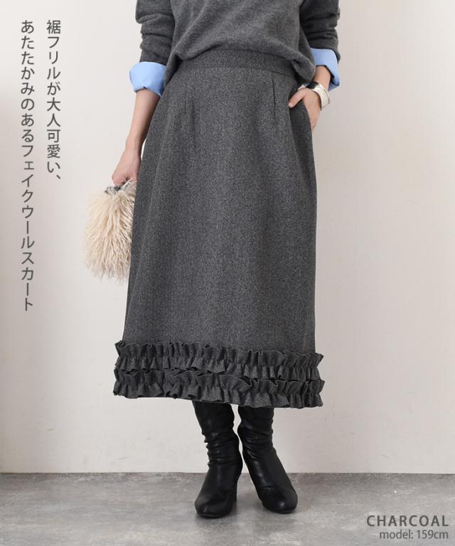 裾フリルが大人可愛い、あたたかみのあるフェイクウールスカート