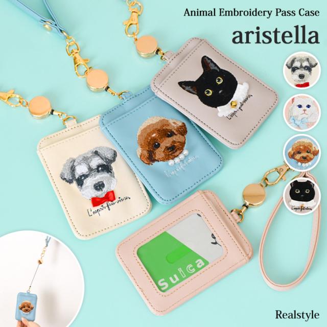 新作 aristella アリステラ パスケース リール付き レディース 定期入れ 定期 カードケース アトリエ・ポピン アニマル 刺繍 通勤 通学