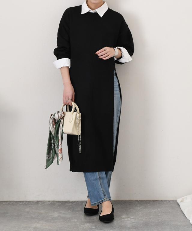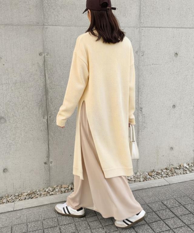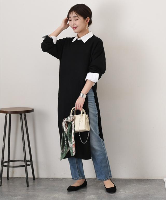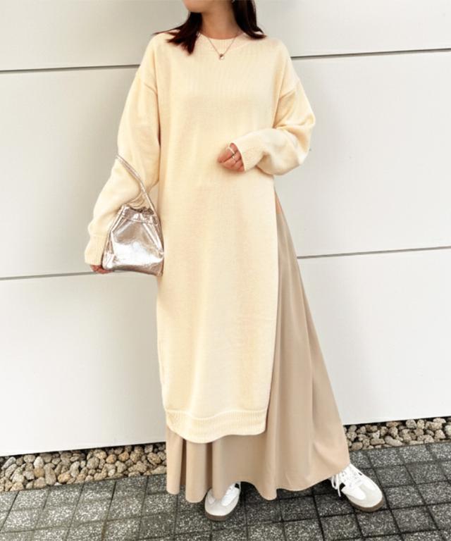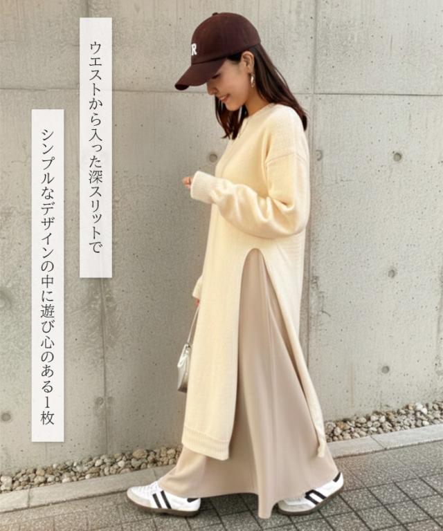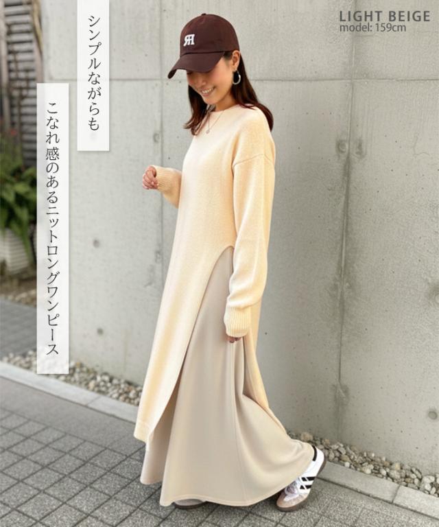 ワイドストレートディープスリットレイヤードニットワンピース レディース 春 秋 冬 長袖 ロング丈 ゆったり 防寒 暖かい あったか おしゃれ きれいめ 可愛い カジュアル 膝下 ひざ下 重ね着 寒さ対策 ニットワンピース スリット クルーネック 丸首 シンプル 体型カバー リラックス 楽ちん 通勤 通学 ルームウェア 部屋着 低身長 高身長 大人 ロングワンピース ロングワンピ あったかワンピース ニットワンピ Iライン 柔らかい やわらか なめらか 滑らか 冷え性 冷え対策 快適 普段着 ふんわり 深スリット かわいい ユニーク 個性的 ベーシック オフィス OL 大人可愛い 大人カジュアル きれいめカジュアル キレカジ ナチュラル ゆる 洗える 洗濯 ウォッシャブル ラフ レジャー 着回し ワンマイル お出かけ デイリー 学生 大学生 ママ 妊婦 マタニティ ぽっちゃり 20代 30代 40代 50代 秋冬 もこもこ ふわふわ モコモコ フワフワ 在宅 テレワーク リモート ショッピング 買い物 旅行 ロングシーズン 韓国ファッション 黒 ブラック ライトベージュ クリーム レーヨン混 レーヨンブレンド 二の腕カバー リブネック リブ袖