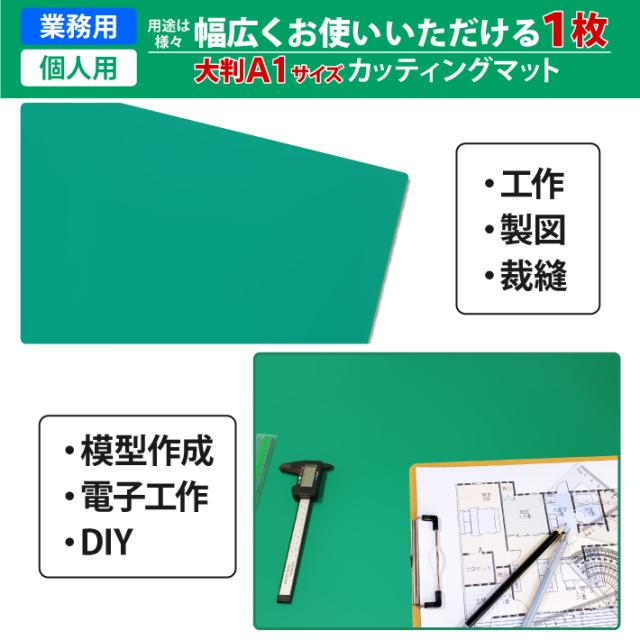 カッティングマット A1 サイズ 90cm x 60cm x 3mm 【無地】特大 業務用 工作 カッターマット デスクマット 2色から選択 両面 大判 切り出し 造形 裁縫 型紙 作業台 プラモデル 600 900 600mm 900mm 3mm 0.6m 0.9m グリーン ブラック グレー