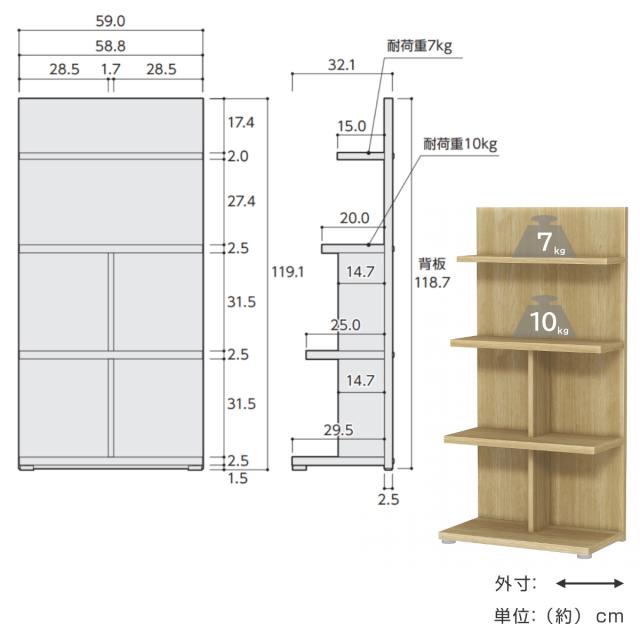| サイズ | 約 幅59×奥行32.1×高さ119.1(cm) |