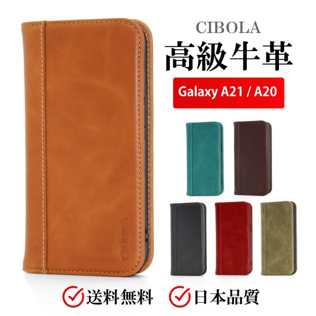 日本メーカーCIBOLA発売の高級牛革・本革 Galaxy A21 ( SC-42A / SCV49 ) / Galaxy A20 ( SC-02M / SCV46 ) 手帳型スマホケース。耐衝撃、スタンド機能、カード収納で便利、本革のエイジングが楽しめる逸品。