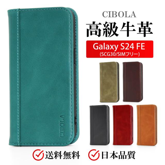 日本メーカーCIBOLA発売の高級牛革・本革 Galaxy S24 FE ( SCG30 ) 手帳型スマホケース。耐衝撃、スタンド機能、カード収納で便利、本革のエイジングが楽しめる逸品。