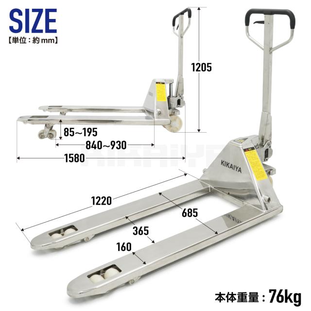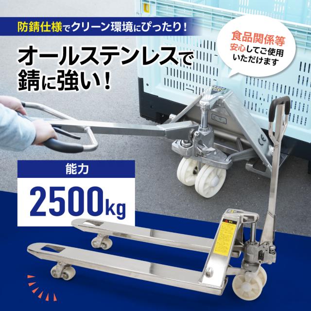 ステンレス ハンドリフト 2500kg ダブルローラー ワイド ロング SUS304 フォーク長さ1220mm 全幅685mm 業務用 ハンドパレット KIKAIYA