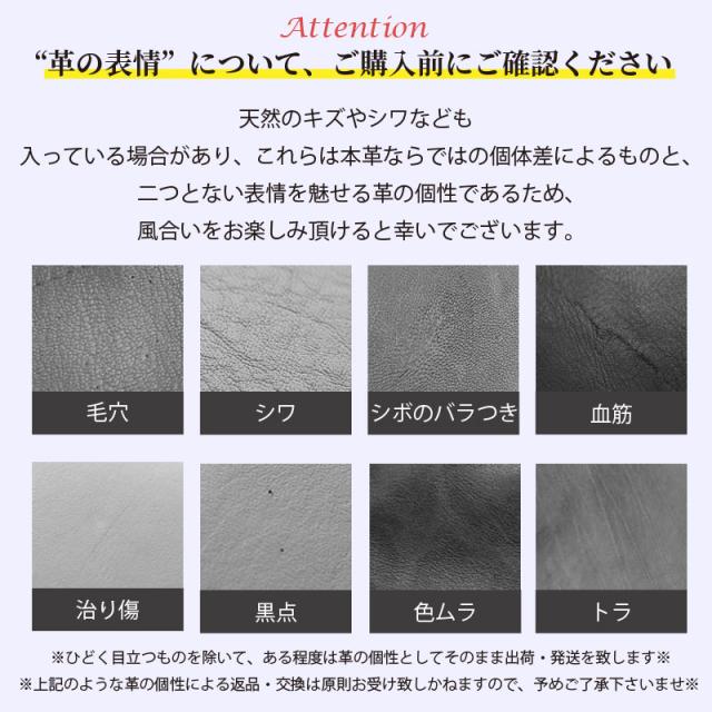 | 注意事項 | 当店で使用している本革は全て本物の革を使用しています。 その為、皮革の模様など掲載画面と異なる場合がございます。 ※ご覧頂いている商品の写真につきましては、できるだけ実物の色に近くなるように努めておりますが、 お使いの環境(モニター、ブラウザ等)の違いにより、色の見え方が実物と若干異なる場合がございます。※ ※掲載商品と色味、模様・柄が異なる理由などのイメージ違いで返品・交換の場合は、返送料お客様ご負担での返送をお願いしております。 予めご了承くださいませ。※ 【仕様変更について】 生産時期によって、革の色味、ファスナーチャームの形状が掲載画像と若干の変更がある場合があります。予めご了承の上ご注文をお願い致します。 |