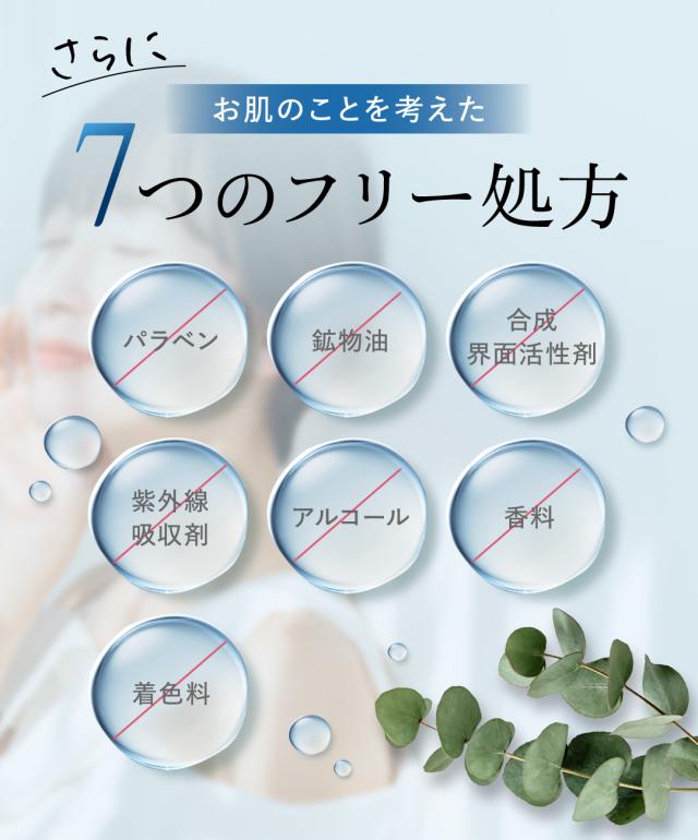 | 成分 | 原材料:水、グリセリン、BG、ペンチレングリコール、ティーツリー葉油、ニコチンアミドモノヌクレオチド、ナイアシンアミド、コメ発酵液、グリチルリチン酸2K、アセチルヒアルロン酸Na、ヒアルロン酸Na、ヒアルロン酸クロスポリマー-2-Na、加水分解ヒアルロン酸Na、ブドウ果実エキス、オウゴン根エキス、ツボクサ葉エキス、ユズ果実エキス、グルコシルセラミド、クダモノトケイソウ果実エキス、トコフェノール、α-グルカン、オレイン酸ジヒドロコレステリル、ノナン酸コレステリル、酪酸コレステリル、酪酸ジヒドロコレステリル、オレイン酸フィトステリル、トリヘプタノイン、PEG-60水添ヒマシ油、ポリアクリル酸Na、水酸化K、エチルヘキシルグリセリン、フェノキシエタノール |