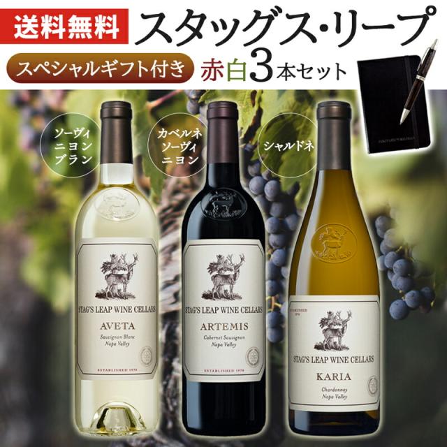 送料無料 スタッグス・リープ スペシャルギフト付き 赤白3本セット