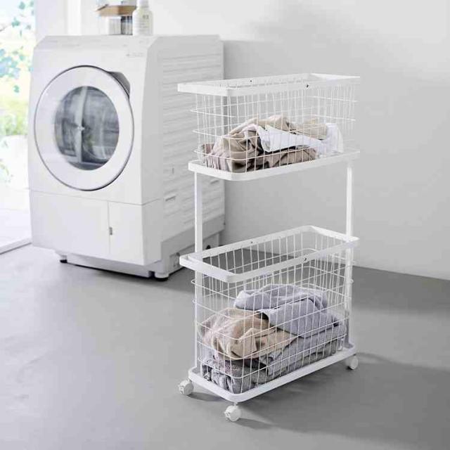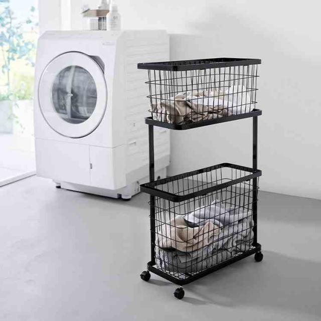 シンプルでスタイリッシュなワイヤーバスケット2台を収納できるランドリーワゴンセットです。
