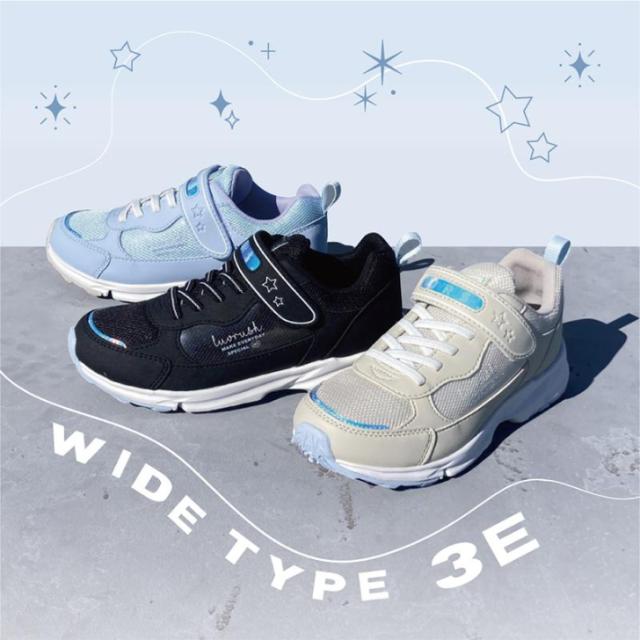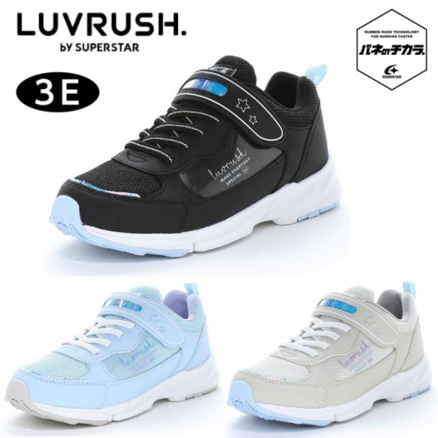 『もっと可愛く!もっと速く!女の子のスポーツシーンを足元から応援!』をコンセプトにガールズ向けに誕生した「ラブラッシュ バイ スーパースター」の幅広3Eジュニアシューズです。