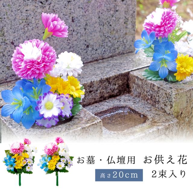 造花 仏花 お墓 仏壇用 2束組 セット お仏壇 お供え花 花束 墓花 盆花 枯れない 長持ち お墓参り 供養 お悔やみ 法事 法要 弔花 命日 四十九日 初盆 お盆 お彼岸 贈り物 お供え 花 綺麗 おしゃれ 小さめ ワイヤー入り 折り曲げ可能 お供え花 20cmタイプ