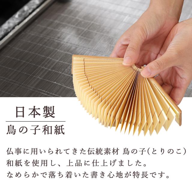 仏事に用いられてきた伝統素材、鳥の子(とりのこ)和紙を使用し、上品に仕上げました。