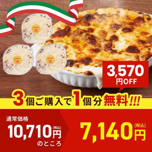 【3個セットで1個分無料】Ciaoro モッツァレラたっぷりラザニア Lサイズ 600g