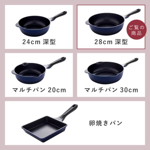 軽量・耐久性・こびりつきにくい。毎日の調理をもっと軽やかに、快適にする28cm深型フライパン。熱源に当たる底面はしっかり肉厚を確保しながら、側面の余分な厚みを削ぎ落とした特別設計。アルミダイカスト製法だからこそ実現できた超軽量仕様で、一度使うと重たいフライパンには戻れないほどの快適さです。