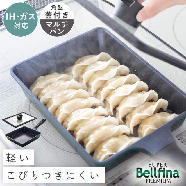 ベルフィーナ マルチパン,マルチパン ih,フライパン 軽い,マルチパン,フライパン,角型,軽い,軽量,蓋付き,ふた付き,フタ付き,ガラス蓋,ih,IH対応,ガス,両用,両方,ガス火,エンボス加工,焦げ付きにくい,汚れにくい,お手入れ簡単,使いやすい,調理器具,調理,料理,キッチン,台所,アーネスト,ベルフィーナ,焼く,蒸す,揚げる,ギョウザ,餃子,PFOAフリー,PFOSフリー,安全,