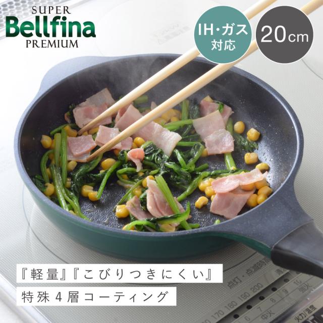 ベルフィーナ フライパン 20cm ih対応 フライパン IH ガス 両用 軽量 軽い エンボス加工 焦げ付きにくい スーパーベルフィーナプレミアム20cm PFOAフリー PFOSフリー
