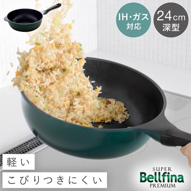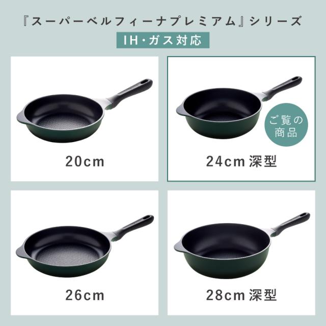 ベルフィーナ フライパン 24cm 深型 ih対応 フライパン IH ガス 両用 軽量 軽い エンボス加工 焦げ付きにくい スーパーベルフィーナプレミアム24cm深型 PFOAフリー PFOSフリー